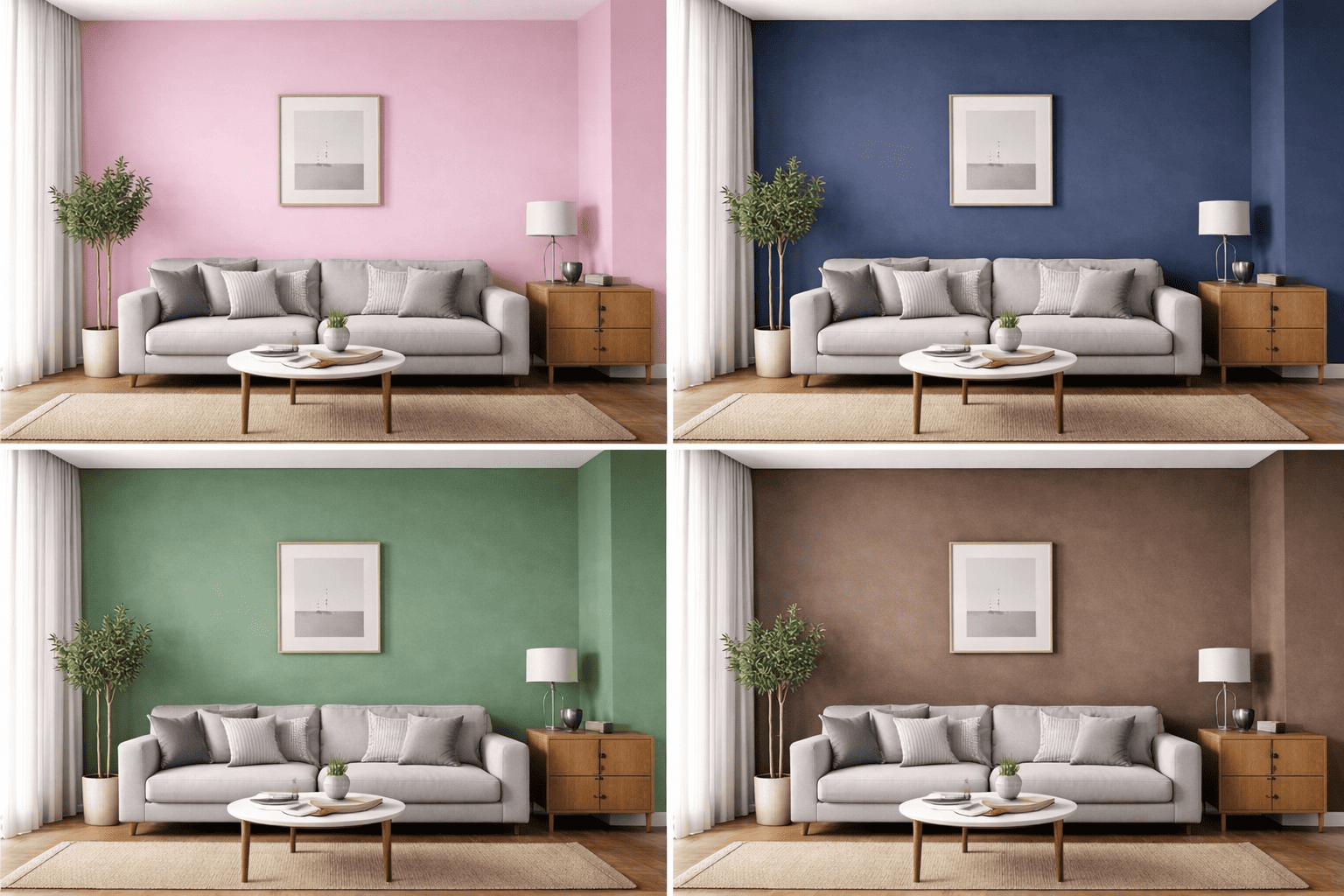 前回は水色・グレー・黄色・白の壁で、部屋の雰囲気の違いを見ていただきました。